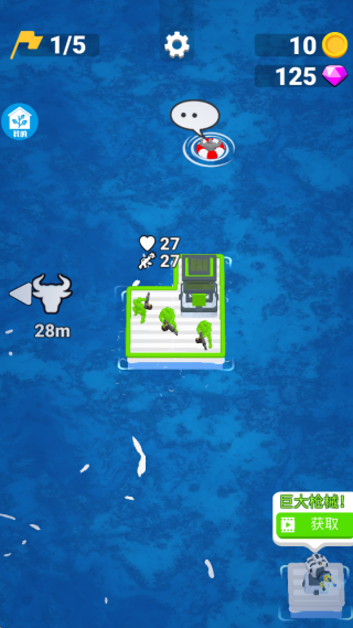 2、收集海上的金币和钻石,不断的寻找大量的幸存者,收集丰富的武器资源,抵御敌人的攻击。