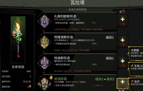 5、长剑:长剑是游戏中最垃圾的武器,不仅伤害低,而技能的后摇很长非常不实用,是所有武器里最弱的。唯一的用处就是自带增加【黑暗能量】获取量的被动,适合来刷【黑暗能量】。因此建议大家最后再玩剑,其他五把武器没有玩好之前,选择剑会让你感到难度过大哦