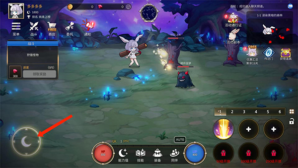 7、如图,点击技能后就可以释放,然后会有技能刷新时间的倒计时,在战斗中合理使用技能可以大范围地击杀小怪,更快地通过关卡,以上就是月兔养成记游戏攻略了。