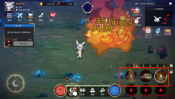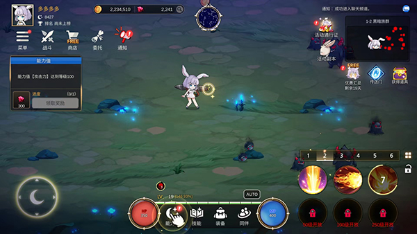 6、在战斗的过程中,角色将不断地解锁新技能,帮助自己更快的击杀小怪,选择需要的技能放置到技能栏中就可以了,