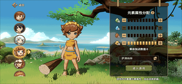 3、这里玩家可以在六个不同属性的人物中选择一位参加接下来的冒险;