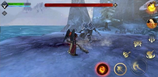 对付这个boss的诀窍是在他攻击时,有盾反就盾反,没盾反就闪避,尽力通过盾反和闪避去保证自己不受到伤害哦。还有非常重要的一点,当他第一次回血的时候我们需要用飞斧技能打断他的回血,不停连招,不然没打断第一次回血,往后会越来越难打。