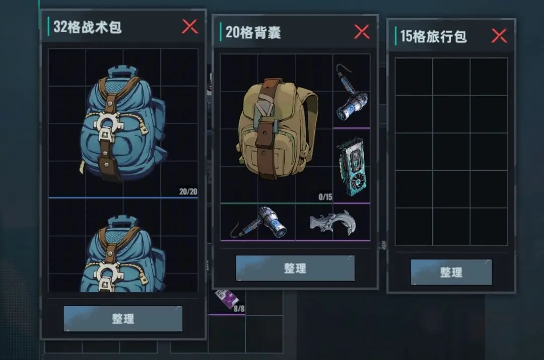 1、玩家可以通过地图中高亮处箱子搜集物资,点击右侧栏物品放入背包中。