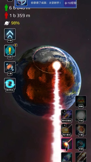 4、不断尝试使用场景内提供的特殊工具,如激光枪或陨石召唤,来体验不同规模的毁灭快感。