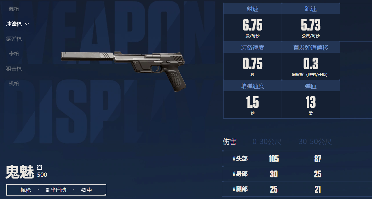 鬼魅(500):中距离一枪爆头秒杀无甲敌人。