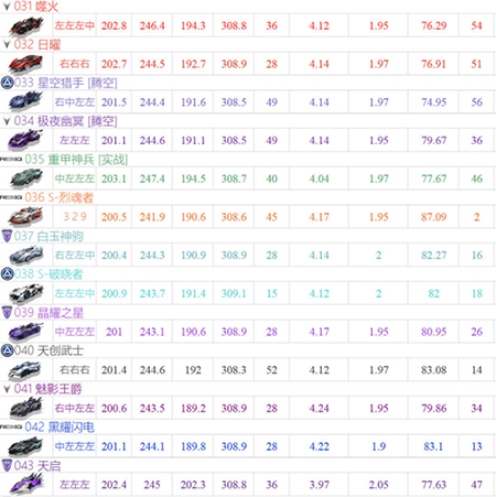 t2的标志就是最新的点券A车,比如说天创武士、金刃黄蜂等,其他都是同强度的早期钻石A车,这些赛车是目前平民玩家的主流用车,实战强度还是比较高的。