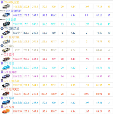 t3级别的赛车在目前游戏中使用的人数相当少,其实裂空严格来说强度还要再下降一个档次,因为这辆车相比帝王和月光女神这两辆免费车来说属性更差。