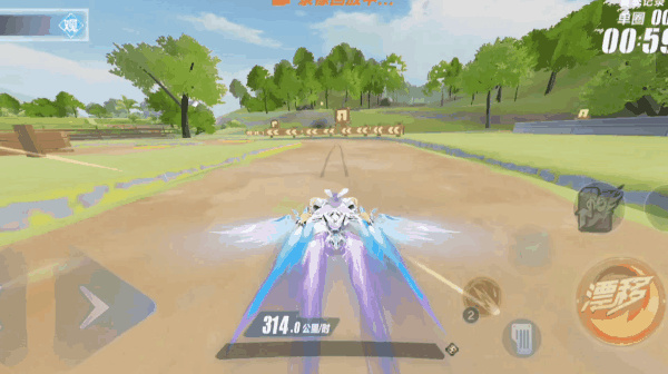 上坡通过左右微调通过连续假弯,接着小漂接CWW喷通过直角弯,在上坡路段到达坡顶后向右漂移并将车头对准左侧树林近道,并进行氮气延续。期间注意路线选择,对准两排树林的中间即可。