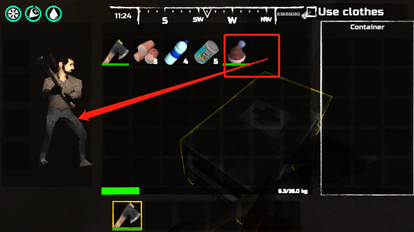 1、进入游戏拾取斧子并装备上