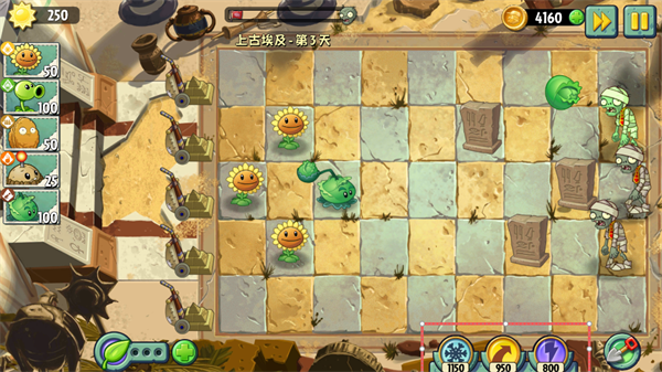 3、不同的是游戏增加了一些特殊的道具如【冰冻、闪电等】每种道具的效果多少不一样的需要的阳光也就不一样