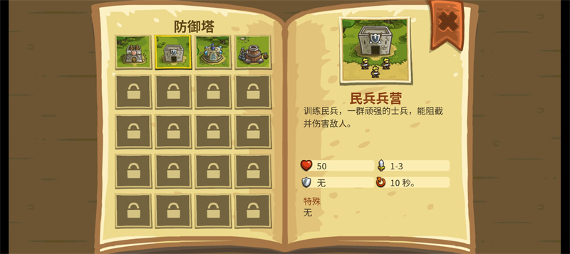技巧6. 炮塔是范围伤害,可以迅速清理数量极多,血量较低的杂兵,最好结合兵营使用。