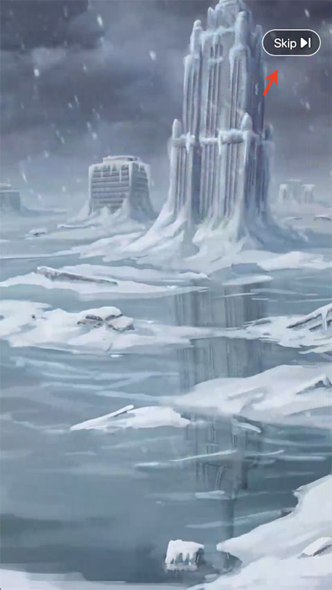 1、进入寒境庇护所游戏内,前面会过一段剧情内容,我们点击右上角"skip"跳过。