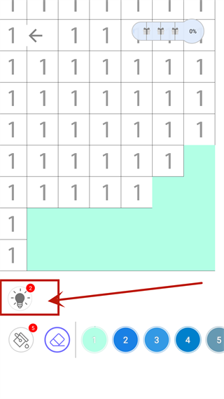 6、由于每一张图片的难度都不相同,当在填色是遇到困难时还可以点击图示的灯泡按钮,系统将会提示该涂色在哪一区域