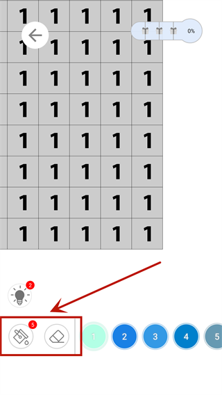 5、填色的方法也很简单,主要有两个按钮,分别为填色和擦除,只需要根据方块上数字使用指定的颜色,并在对应的地方涂上色彩就可以