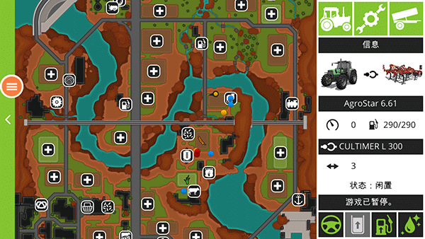 7、世界地图里可以查看附件的农场、商店、以及加油站等;