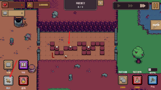 2、墙壁建好之后,我们可以放置伙伴来布置防御。