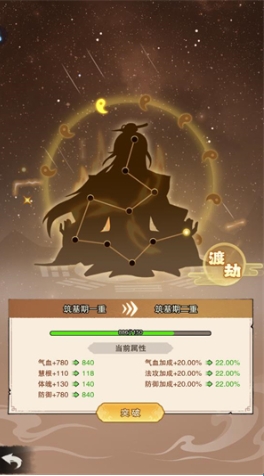 4、当你完成任务或者击败怪物时会获得修为,修为满后可以点击右下角的按钮来突破不同的境界。