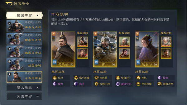 你可从中找到与自己武将池高度匹配的阵容一键上阵,减轻你搜索攻略、手动配将的工作量。