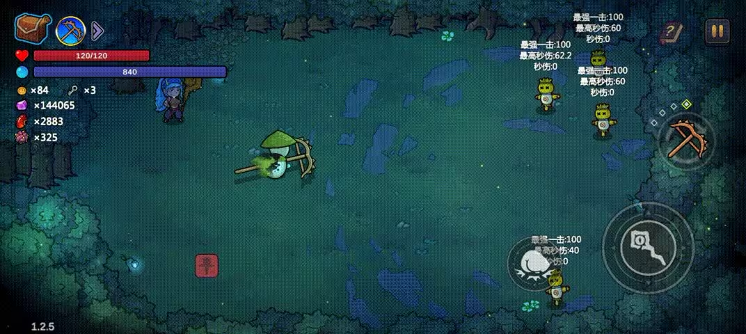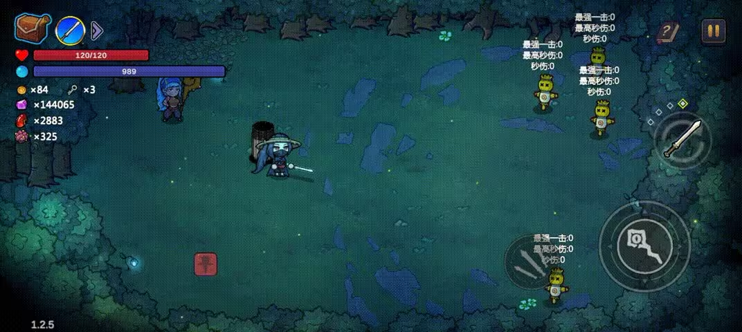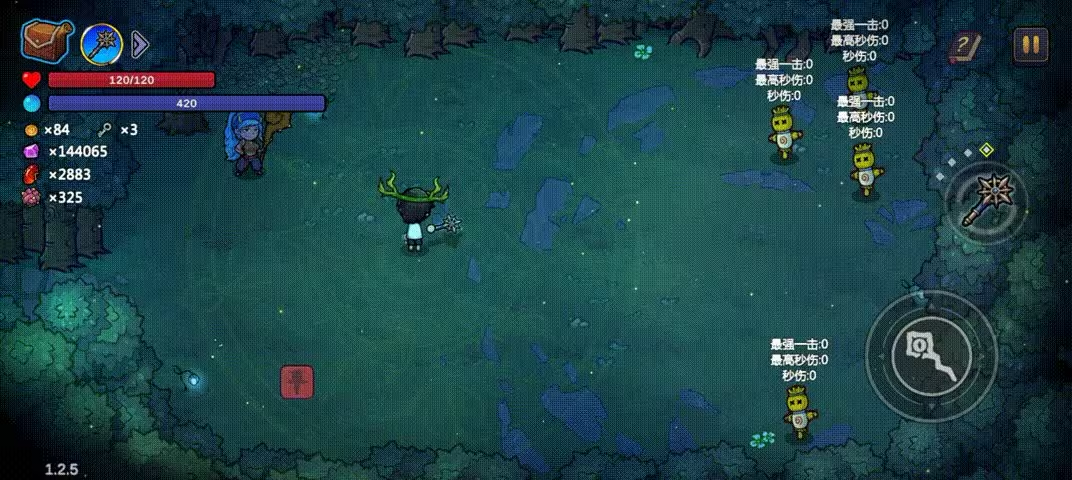 3、游戏采用横版战斗,玩家可通过左侧轮盘来控制角色移动,右侧法杖来攻击敌人;