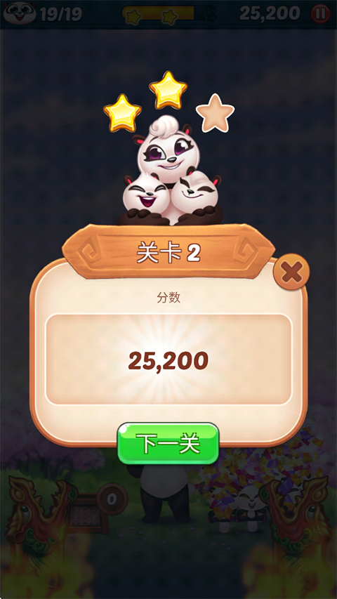 游戏的目标是消除所有泡泡,将被困在泡泡中的小熊猫成功解救。当屏幕上的泡泡完全清除且所有熊猫宝宝获救时,即可顺利完成关卡。