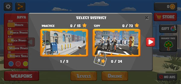 街头搏斗(City Fighter vs Street Gang)是一款热血精彩的格斗对战玩法的手游,这款游戏采用低多边形的卡通3D画面制作,在轻松欢快的背景音乐下,玩家可以化身为一位格斗家,在捏好人之后,就能来到街头进行探索,还能施展手道、功夫、泰拳、跆拳道等不同流派的招式,与来袭的对手交战。