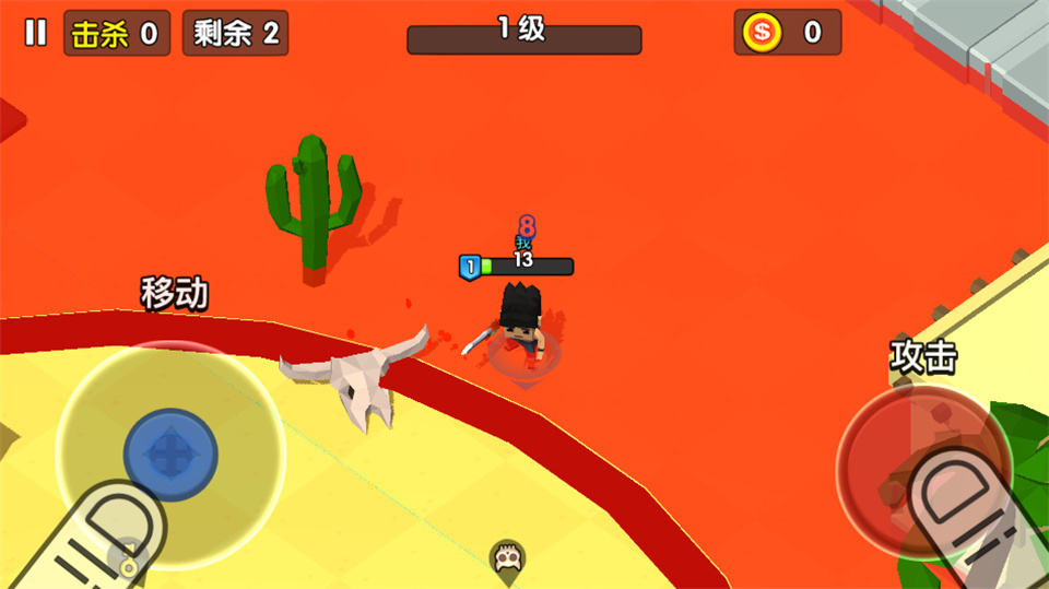 2、使用虚拟摇杆控制角色移动,点击攻击按钮进行普通攻击