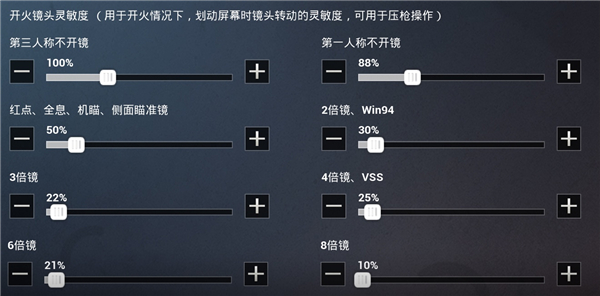 开火灵敏度,这个需要和上方的镜头灵敏度相结合才能做到快、准、狠,开火灵敏度就是开镜后开火的灵敏度,常常和压枪联系到一起。同样,调太高压枪的时候准星会急剧下降迫使特种兵们打不到敌人,太低呢压枪的时候准心会翘到天上找不到敌人。所以说前两个调合适,这个必不可缺,我们为特种兵准备好了。