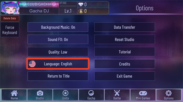 1、在本站下载Gacha Club最新版,打开进入游戏右下角可以选择语言,之后点击进入游戏;