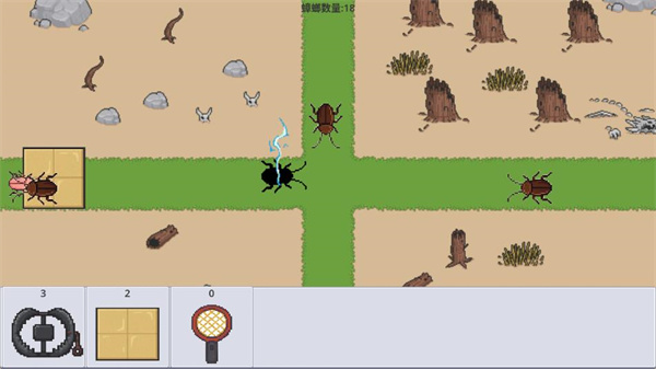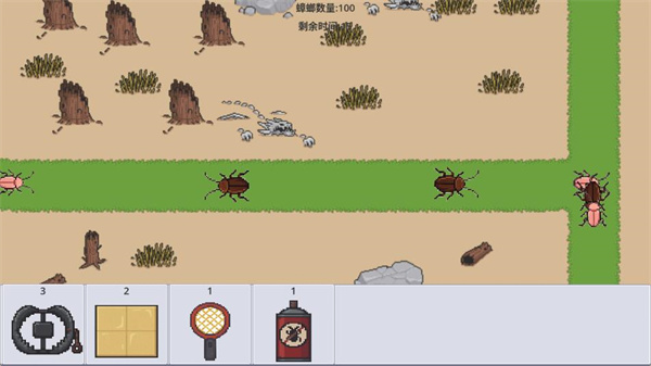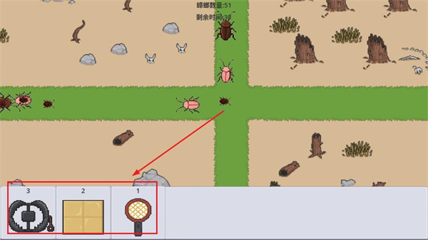 4、使用下方的道具栏的道具,拖到游戏内,消灭蟑螂