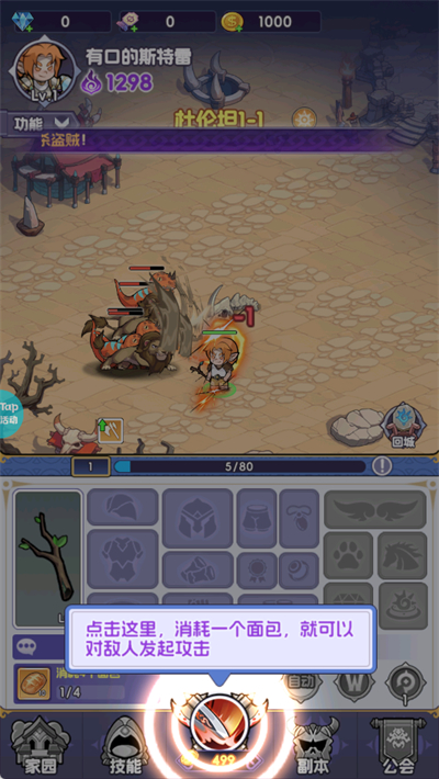 2、点击下方的攻击键消耗面包进行攻击。