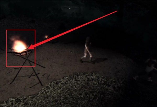 2、如图所示随后使用零红蝶火把点燃【火盆】照亮道路。