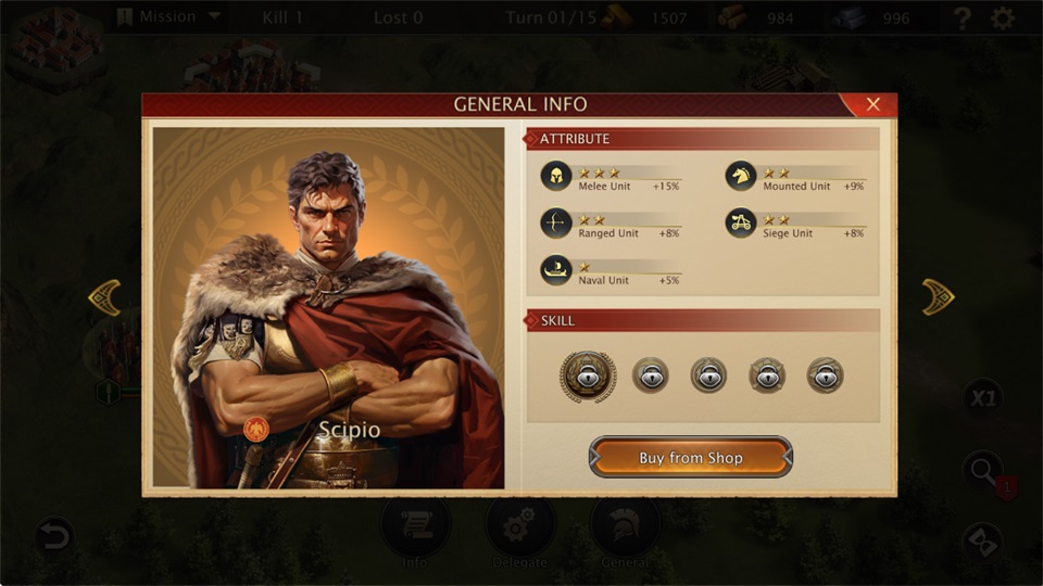 特点:对迦太基系战役很强,爆发和统帅能力优秀。