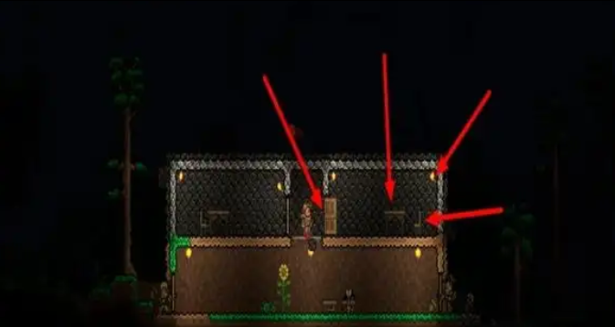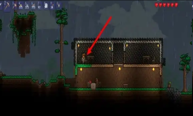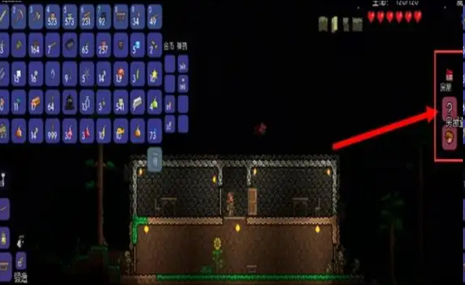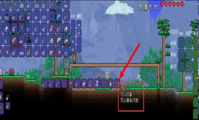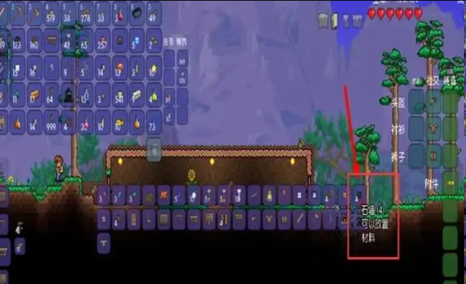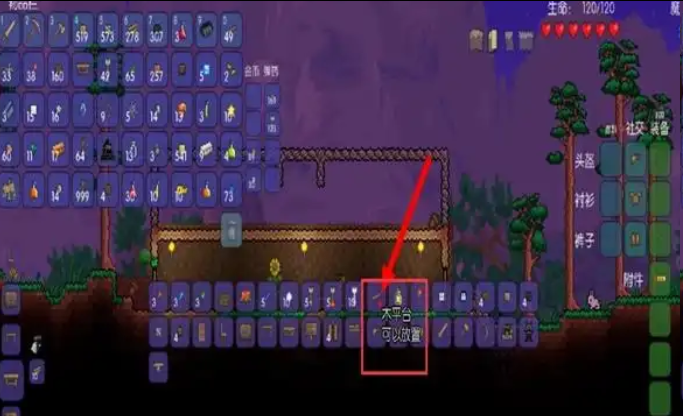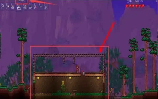1、首先搭建一个战斗平台,最好在npc居住的环境之上,宇宙之下,长度最好超过100格(有助于后期打新三王中的魔眼和硬长直);