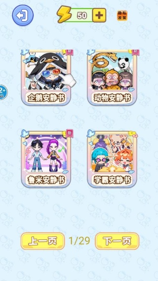 1、进入游戏,可以看到这里有很多不同主题的安静书能够选择;