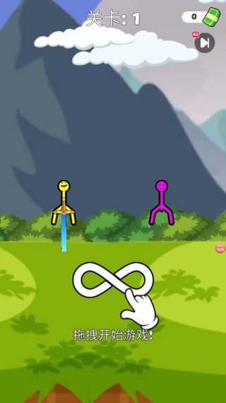 1、进入游戏,随机开启新的挑战,准备操控火柴人对战;