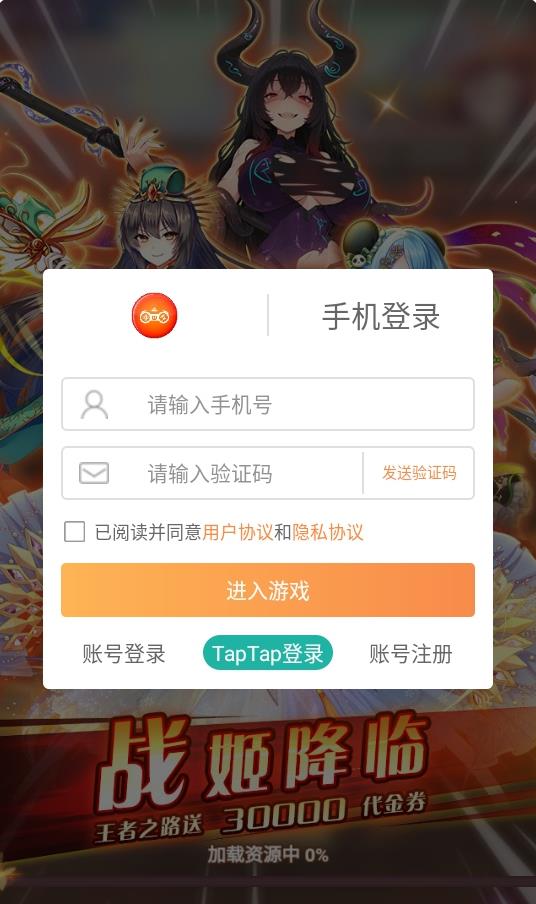 1.进入游戏后进行游戏注册登录。