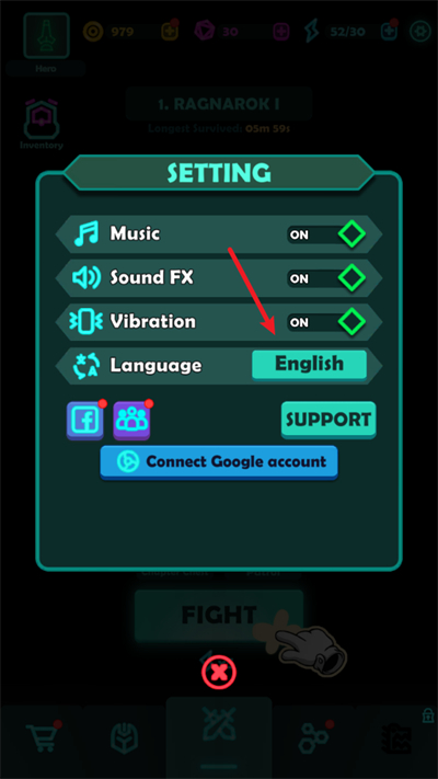 在设置菜单中,找到“Language”(语言)选项,并点击其后的“ENGLISH”(英语)链接。