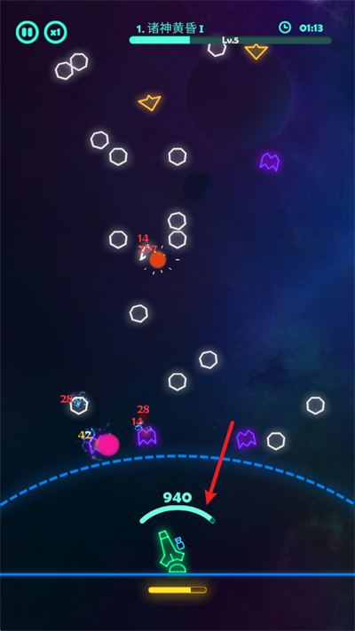 在这款游戏中,屏幕下方会自动进行射击,通过拖动屏幕,玩家可以手动调整瞄准方向,以更精准地打击敌人。