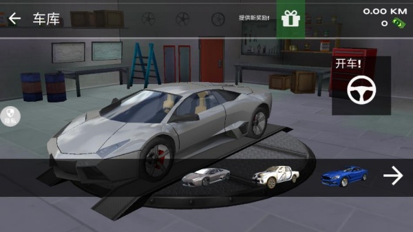 1、进入车库,可以选择一辆汽车准备赛车,很多汽车还未解锁;