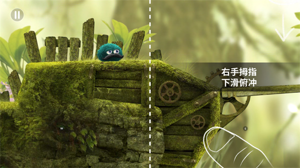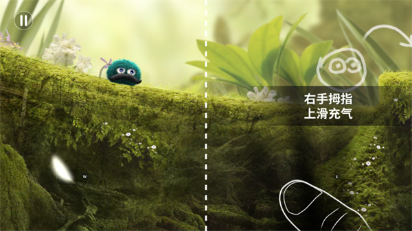 2、左手滑动屏幕控制毛球移动方向,右手则轻碰屏幕使其跳跃,长按能让毛球漂浮。