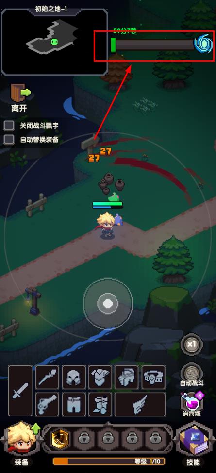 2、单手操作,控制角色移动,靠近怪物自动攻击