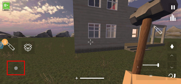 4、进入游戏后,滑动左下角的摇杆进行移动,滑动中间的屏幕,移动游戏的视角;