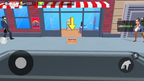 2、经营超市,移动自己的屏幕,到处看看观察一下;
