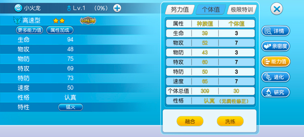 5、洗练:拥有足够的神奇胶囊后,点击右下方的洗练按钮,以开始提升个体值。