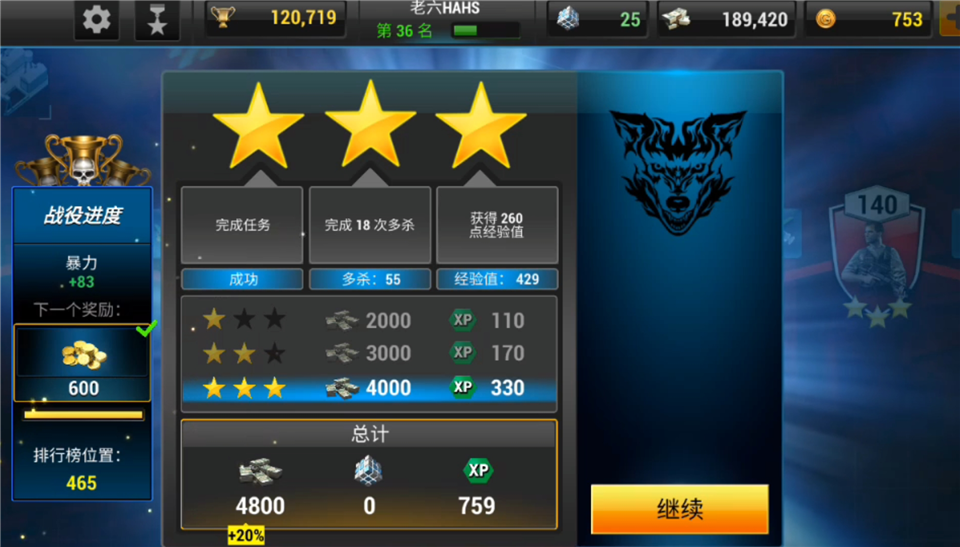 3、达到三星可获取钱,可以反复刷。