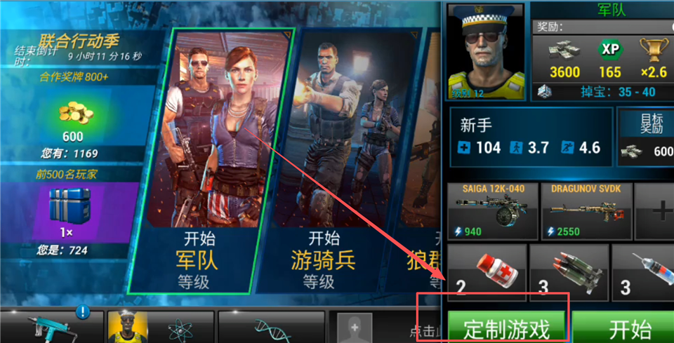 1、在游戏主界面,点击【定制游戏】。
