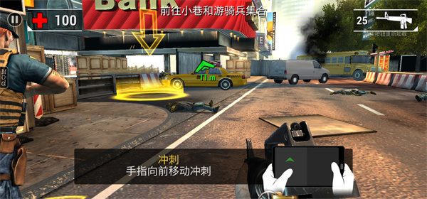 4、当我们手指向前移动时还可以进行冲刺,遇到僵尸快要靠近时可以使用;