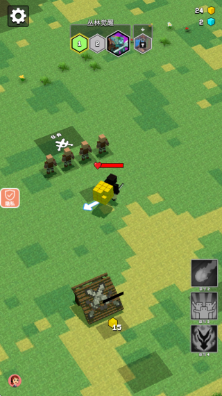 1、进入游戏,置身于像素世界,控制游戏中的指挥官开始移动,收集金块,建造自己的阵营。