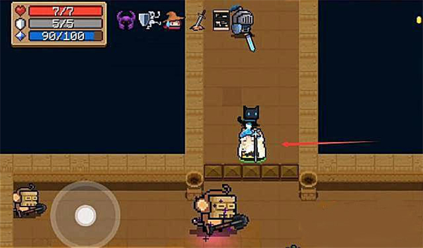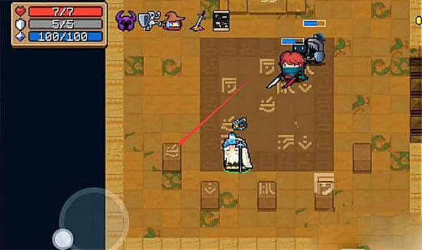 1、在元气骑士中找到沙漠关卡中的隐藏小机关,如下图所示。
