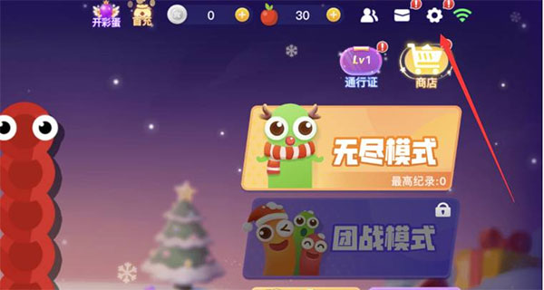 首先进入游戏贪吃蛇大作战 点击右上角的设置;